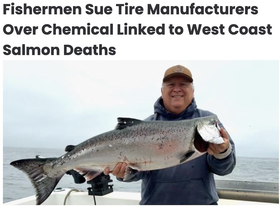 “At the center of the dispute is 6PPD, a compound used to prevent tires from breaking down when exposed to air and ozone. According to the plaintiffs, that same chemical transforms into a toxic byproduct known as 6PPD-quinone once tire particles are washed off roads during storms. They argue this runoff can devastate salmon populations along the California and Alaska coasts.